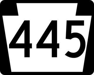 Keywords: PA-445.svg 750 mm by 600 mm 30 in by 24 in Pennsylvania shield made to the specifications of the Manual on Uniform Traffic Control Devices MUTCD 2003 Edition sign M1-5 Uses the Roadgeek 2005 fonts United States law does not permit the copyrighting of typeface designs and the fonts are meant to be copies of a U S Government-produced work anyway Own 2006-11-14 TwinsMetsFan Public Domain Pennsylvania Route shields 445 |