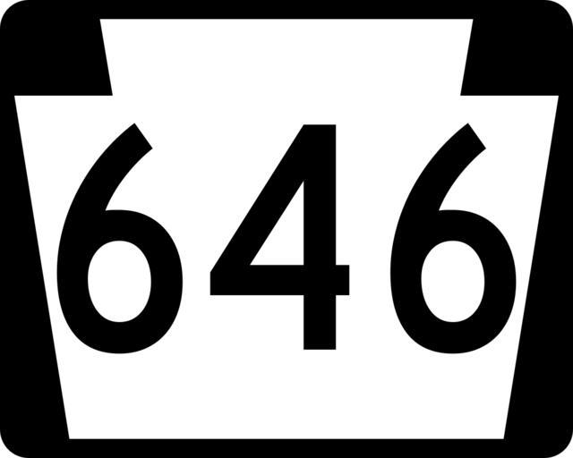 Keywords: PA-646.svg 750 mm by 600 mm 30 in by 24 in Pennsylvania shield made to the specifications of the Manual on Uniform Traffic Control Devices MUTCD 2003 Edition sign M1-5 Uses the Roadgeek 2005 fonts United States law does not permit the copyrighting of typeface designs and the fonts are meant to be copies of a U S Government-produced work anyway own 2006-07-15 TwinsMetsFan Public Domain Pennsylvania Route shields 646 Pennsylvania Route 646 646 number |