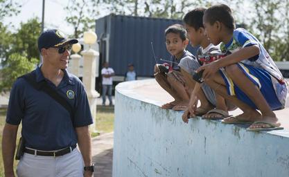 Keywords: Pacific Partnership 160611-N-TR165-003.jpg en 160611-N-TR165-003 DILI Timor Leste June 11 2016 Capt Peter Roberts prospective commanding officer of USNS Mercy T-AH 19 greets local Timorese boys during a community relations event at Christo Rei Park The day long event which is part of Pacific Partnership 2016 had many activities to include face painting soccer volleyball and various other sports Pacific Partnership 2016 marks the sixth time the mission has visited Timor Leste since its first visit in 2006 Medical engineering and various other personnel embarked aboard Mercy are working side-by-side with partner nation counterparts exchanging ideas building best practices and relationships to ensure preparedness should disaster strike U S Navy photo by Mass Communication Specialist 2nd Class William Cousins/Released <br>Unit Defense Imagery Management Operations Center 2016-06-10 Petty Officer 3rd Class William Cousins https //www dvidshub net/image/2657247/pacific-partnership 160611-N-TR165-003 2016-06-14 06 58 UNDISCLOSED LOCATION PD-USGov-Military-Navy USNS Mercy T-AH-19 Pacific Partnership 2016 Images from DoD uploaded by Fæ |