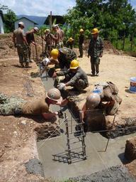 MAKE A MEME View Large Image Pacific Partnership 2012 120626-N-ZZ999-004.jpg en U S Navy and Royal Cambodian Army engineering team members place the finishing touches on a grade beam to provide stabilization for the walls of the new Kampong Kreng Health Clinic ...