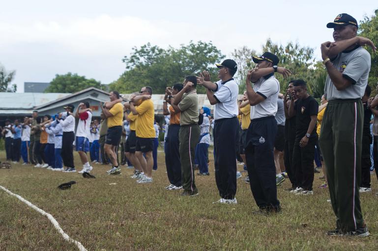 Keywords: Pacific Partnership 2014 140527-N-NW827-046.jpg en Indonesian New Zealand Singaporean and U S Service members warm up during a sports day event in support of Pacific Partnership 2014 in Kupang Indonesia May 27 2014 Pacific Partnership is an annual deployment of forces designed to strengthen maritime and humanitarian partnerships during disaster relief operations while providing humanitarian medical dental and engineering assistance to nations of the Pacific U S Navy photo by Mass Communication Specialist 1st Class Stephen Oleksiak/Released Unit Defense Imagery Management Operations Center DVIDS Tags DIMOC; Fitness; USN; DVIDS Bulk Import 2014-05-27 Petty Officer 1st Class Stephen Oleksiak https //www dvidshub net/image/1382530/pacific-partnership-2014 140527-N-NW827-046 2014-06-06 14 52 KUPANG ID PD-USGov-Military-Navy Pacific Partnership 2014 Images from DoD uploaded by Fæ |