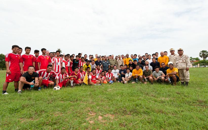 Keywords: Pacific Partnership 2014 140624-N-CF750-322.jpg en Cambodian Japanese and U S service members pose for a photo during a Pacific Partnership 2014 sports day event in Sihanoukville Cambodia June 24 2014 Pacific Partnership is an annual deployment of forces designed to strengthen maritime and humanitarian partnerships during disaster relief operations while providing humanitarian medical dental and engineering assistance to nations of the Pacific U S Navy photo by Chief Mass Communication Specialist Greg Badger/Released Unit Defense Imagery Management Operations Center DVIDS Tags Foreign military; DIMOC; USAF; DVIDS Bulk Import; Sports News 2014-06-24 Gregory Badger https //www dvidshub net/image/1418407/pacific-partnership-2014 140624-N-CF750-322 2014-06-26 00 18 SIHANOUKVILLE KH PD-USGov-Military-Navy Pacific Partnership 2014 Images from DoD uploaded by Fæ |