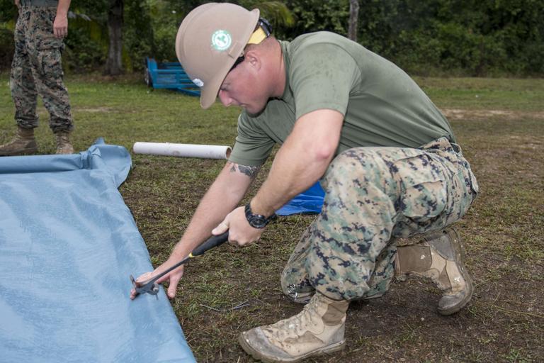 | Keywords: Pacific Partnership 2016 160806-N-CV785-039.jpg en 160806-N-CV785-039 KUANTAN Malaysia Aug 6 2016 Marine Sgt Zachary Weatherwax attached to 1st Combat Engineer Battalion constructs a frame to protect wet concrete at Sekolah Kebangsaan Wira from seasonal rains U S Navy Seabees worked alongside Malaysian Royal Engineering Regiment soldiers to construct two large play courts for the school children as part of a Pacific Partnership 2016 engineering capability project This is the first time Pacific Partnership has visited Malaysia During the mission stop partner nations are working side-by-side with local military and civilian organizations in a search and rescue exercise civil engineering projects community relation events and subject matter expert exchanges University of California-San Diego Predental Society photo by Ted Wendel/Released <br>Unit Defense Imagery Management Operations Center 2016-08-05 michael d cole https //www dvidshub net/image/2803786/pacific-partnership-2016 160806-N-CV785-039 2016-08-19 08 02 KUANTAN MY PD-USGov-Military-Navy Pacific Partnership 2016 United States Navy Seabees Images from DoD uploaded by Fæ |