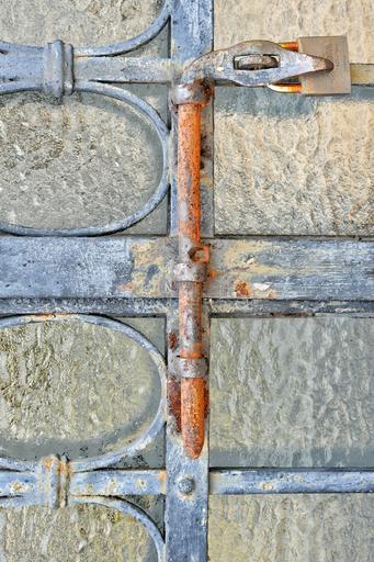 Keywords: padlock gate texture paint color iron drawing the framework painting rust wall plaster bricks artistic