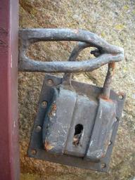 Keywords: padlock large old rust 1700 century gate gray brown metal