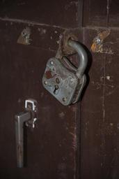 Keywords: padlock old metal closed brown handle door wood scale secure security sure