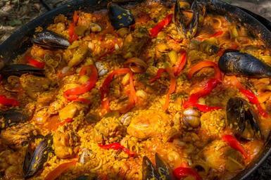 Keywords: paella andalusia spain cooking mussels mixed pan food seafood dish meal rustic mediterranean saffron traditional spice yellow cuisine restaurant tasty paprika fresh spicy delicious famous