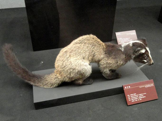 Keywords: Paguma larvata - Kunming Natural History Museum of Zoology - DSC02489.JPG Taxidermy exhibit in the Kunming Natural History Museum of Zoology 昆明动物博物馆 Kunming Yunnan China I took this photograph 2011-08-10 03 05 03 Daderot Public domain Taxidermy in the Kunming Natural History Museum of Zoology Paguma larvata Taxidermied Viverridae |
