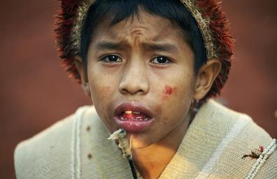 Keywords: paï tavyterä paraguay guaraní portrait people PÄI TAVYTERÄ (significa: los habitantes del centro de la tierra) son indígenas guaraní que se encuentran en los Deptos. de Amambay, Concepción y Canindeyú (Paraguay). Antiguamente su territorio tradicional se extendía desde el noroeste de la Región Oriental del Paraguay, hasta el Estado de Matto Grosso, en el Brasil. Viven actualmente en comunidades o TEKOHA. Cultivan maíz, mandioca, poroto, arroz, caña de azúcar y algodón. Otra fuente de alimentación es la caza de animales silvestres, como el venado, el tapir y el cerdo silvestre. También los ríos ofrecen buenas posibilidades de pesca. Todo esto se complementa con la recolección de frutos del monte, y la miel silvestre. Habitan en grandes casas comunales de 15 o más metros de largo, no se distingue techo y pared y tienen tres entradas, en el norte, el sur y el este. Los rituales religiosos están compuestos, principalmente, por plegarias cantadas y danzas que se realizan en ocasión de las fiestas comunitarias y familiares. Acompañan diversos instrumentos musicales, como maracas adornadas con plumas de tucán, flautas y bastones de ritmo. Como todos los guaraní, en sus cantos y oraciones manifiestan su profundo relacionamiento con los seres sobrenaturales. PÄI TAVYTERÄ (significa: los habitantes del centro de la tierra) son indígenas guaraní que se encuentran en los Deptos. de Amambay, Concepción y Canindeyú (Paraguay). Antiguamente su territorio tradicional se extendía desde el noroeste de la Región Oriental del Paraguay, hasta el Estado de Matto Grosso, en el Brasil. Viven actualmente en comunidades o TEKOHA. Cultivan maíz, mandioca, poroto, arroz, caña de azúcar y algodón. Otra fuente de alimentación es la caza de animales silvestres, como el venado, el tapir y el cerdo silvestre. También los ríos ofrecen buenas posibilidades de pesca. Todo esto se complementa con la recolección de frutos del monte, y la miel silvestre. Habitan en grandes casas comunales de 15 o más metros de largo, no se distingue techo y pared y tienen tres entradas, en el norte, el sur y el este. Los rituales religiosos están compuestos, principalmente, por plegarias cantadas y danzas que se realizan en ocasión de las fiestas comunitarias y familiares. Acompañan diversos instrumentos musicales, como maracas adornadas con plumas de tucán, flautas y bastones de ritmo. Como todos los guaraní, en sus cantos y oraciones manifiestan su profundo relacionamiento con los seres sobrenaturales. |