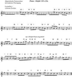 Keywords: Paiandelphi1.png music example from old greece Own 2006-12-23 kmbembe kmbembe Ancient Greek Tone System Sheet music examples