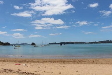 Keywords: paihia new zealand north island beach landscape nature water islands travel sea summer pacific holiday by the sea beach sea seaside blue boot clouds sky