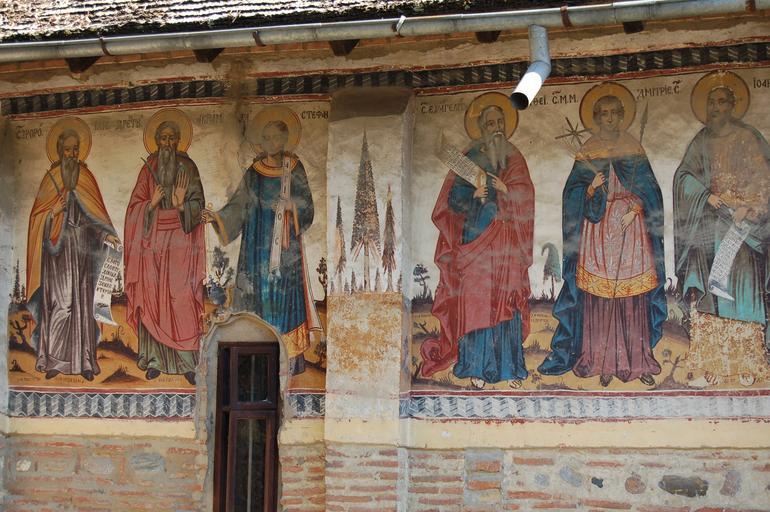 | Keywords: Painted church exterior.JPG en Painted exterior of Olari the thatched Orthodox church in Curtea de Arges own Lawson Speedway 2007 Curtea de Argeș Romanian Orthodox churches in Argeș County Orthodox murals in Romania Murals and icons on the exterior of churches |