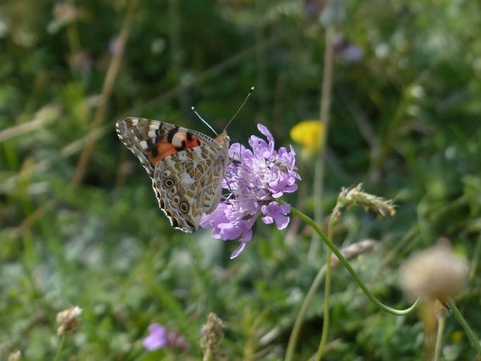 MAKE A MEME View Large Image painted lady butterfly vanessa cardui cynthia cardui edelfalter nymphalidae animal insect plant knautie button flower knautia kardengewaechs dipsacoideae pincushion flower scabiosa light purple flower blossom bloom half rosette plant blue ...