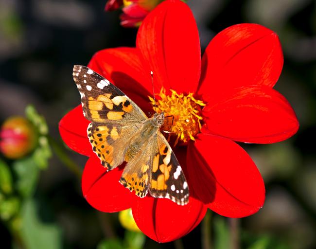 Keywords: painted lady dahlia red flowers flower garden garden plant flower garden plant dahlia garden late summer nature red flower butterfly nectar fly animal