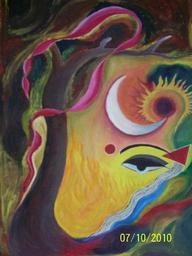 Keywords: Painting -2.JPG en This painting is about a woman who is very sad she has no colors in her lofe now her happiness joys are burning in this sadness She is shown with tears in her eyes and her veil is hanging on a dried tree The tree which was green once but now its dreid A sun and a moon is also shown which depicts that once her life was as bright as sun-shine but now its dark as night depicting moon To sum up the painting shows sadness in womans life may be due to that her husband has left her or now is dead own Vijaymoreb1 watermark Abstract paintings |