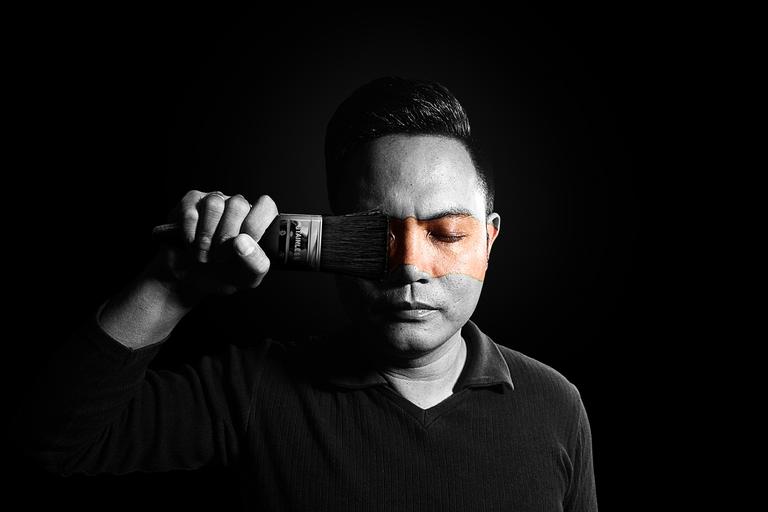 Keywords: painting body painting headshot brush black and white people designer arts artist expression