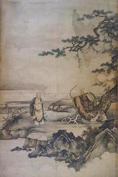 View Original: | Painting on Zen Enlightenment (Sanping baring his chest and Shigong stretching his bow), attributed to Kano Motonobu, v2,Muromachi period, 16th century, panel from Daisen-in temple - Tokyo National Museum - DSC05824.JPG (3648x5472) | |||