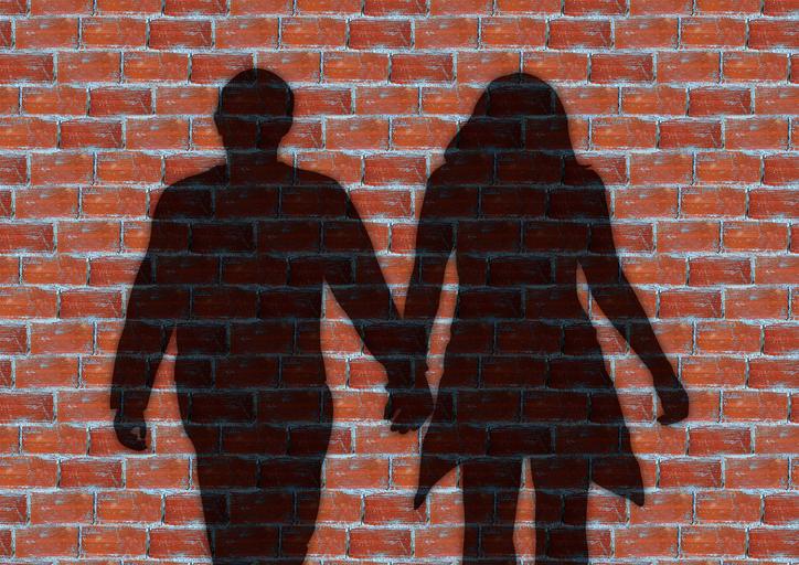 Keywords: pair lovers hand in hand wall stones shadow silhouette mar works graphic graphically together away go