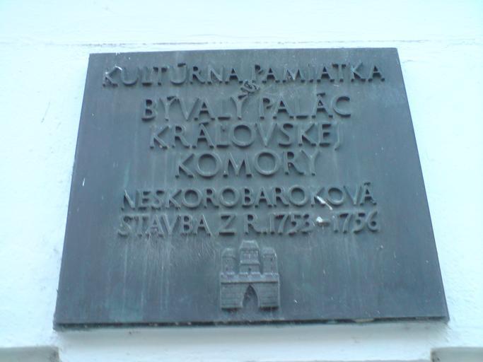 Keywords: Palác Uhorskej kráľovskej komory table.jpg Palác Uhorskej kráľovskej komory Michalská Bratislava Own 2008-04-23 Wizzard Own work all rights released Public domain Palaces in Bratislava Plaques in Bratislava