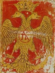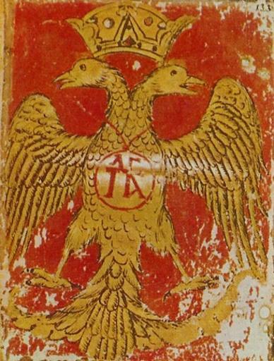 Keywords: Palaeologoi eagle.jpg Device of the Emperor John VIII Palaiologos featuring the Byzantine double-headed eagle and the sympilema the family cypher of the Palaiologos dynasty Church mural century 16 Author PD-old <gallery>Image Palaeologoi eagle XV c Byzantine miniature jpg Image Palaiologos-Dynasty-Eagle svg Image CoA of Palaiologos Dynasty svg</gallery> File Byzantine Eagle svg File Device of the Palaiologos Dynasty svg Crowned double-headed eagles Byzantine Empire Emblems of the Palaiologos dynasty Family Emblems |