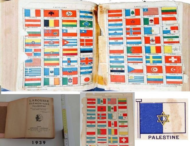 | Keywords: Palestin-flag-1939.jpg ru Согласно ф анцузскому слова ю Ла ус Larousse 1939 года 1 Флаг Палестины п едставлял из себя азделённое ве тикально пополам бело-голубое поле с голубой частью у д евка и изоб ажённой в цент е шестиконечной звездой Давида 1939 http //orenu co il/ p 7481 Larousse 1939 other versions PD-Art Uploaded with UploadWizard Flags |