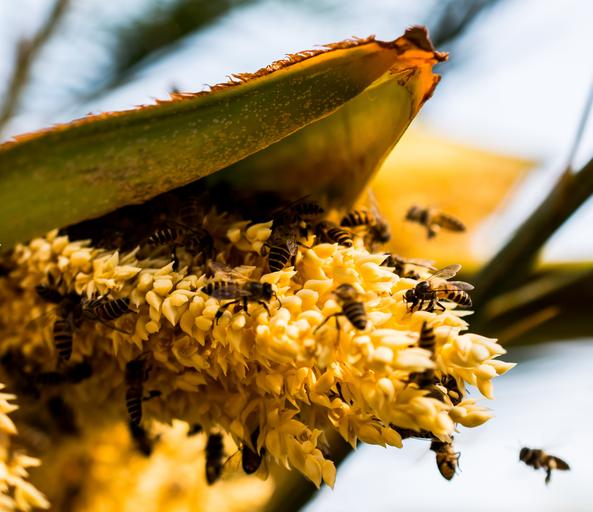 Keywords: palm blossom bees collect honey
