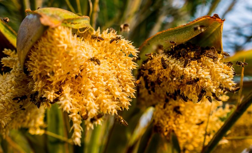 Keywords: palm blossom bees collect honey