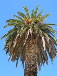 Keywords: palm tree sky plant blue contrast leaves trunk green big