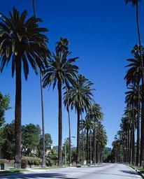 Keywords: palm trees street beverly hills bel air los angeles california city town urban cityscape tropical landscape road landmark usa