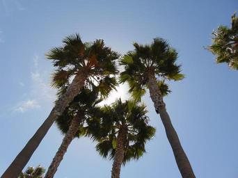 Keywords: palm trees sunlight blue sky summer tropical tree palm leaf tropic