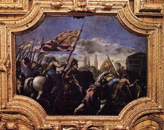 | Keywords: Palma il Giovane - Conquest of Padua - WGA16907.jpg Artwork 1584 Oil on canvas Institution Palazzo Ducale Venice object history credit line accession number WGA link 16907 http //www wga hu/art/p/palma/giovane/1/4ducale3 jpg http //www wga hu/html/p/palma/giovane/1/4ducale3 html PD-old-100 painting historical Italian 1551-1600 Paintings by Palma il Giovane in the Doge's Palace Venice Interior of the Doge's Palace Venice - Sala del Maggior Consiglio 1584 paintings WGA form painting WGA type historical WGA School Italian WGA time period 1551-1600 1580s paintings from Italy 1580s paintings in Italy People with flags in art 16th-century oil on canvas paintings in Italy |
