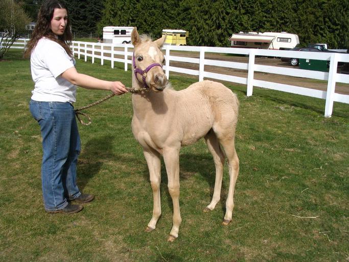 Keywords: horses palomino colt outdoor animal In this picture the colt, named Bear, is about two months old. He is accompanied by a stablehand holding his lead. CC0 waiver: To the extent possible under law, I waive all copyright and related or neighboring rights to this work. In this picture the colt, named Bear, is about two months old. He is accompanied by a stablehand holding his lead. CC0 waiver: To the extent possible under law, I waive all copyright and related or neighboring rights to this work. |