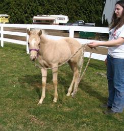 Keywords: horses palomino colt outdoor animal In this picture the colt, named Bear, is about two months old. He is accompanied by a stablehand holding his lead. CC0 waiver: To the extent possible under law, I waive all copyright and related or neighboring rights to this work. In this picture the colt, named Bear, is about two months old. He is accompanied by a stablehand holding his lead. CC0 waiver: To the extent possible under law, I waive all copyright and related or neighboring rights to this work. |