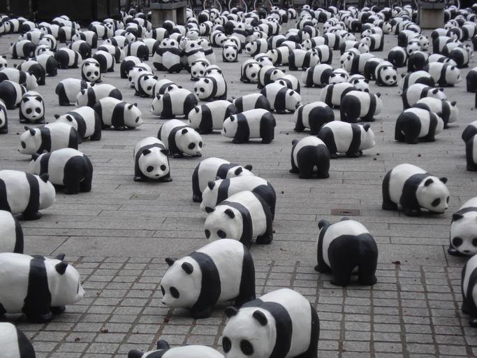 Keywords: pandas miniature exhibition bears play cute symbol toy masses