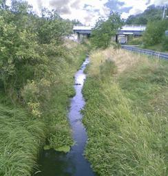 Keywords: PAnke-Ring-August-2008-205.png de Die Panke durchfließt nahe Karow die Brücke des 1953 erbauten Berliner Außenringes Der Bau des Ringes wurde durch die Teilung der Stadt nötig Die Deutsche Reichsbahn war DDR-Bahn und die Durchfahrung von Westberlin für DDR-Bürger sollte vermieden werden own Boonekamp 2008-08-09 52 36 41 N 13 27 06 E region DE-BE_heading 015 Panke in Berlin-Karow |