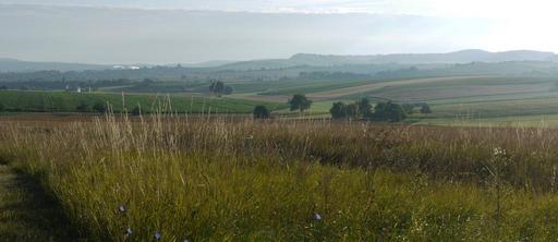 Keywords: panorama agriculture morgenstimmung wide peaceful rural hill horizon haze fields vineyards wine wavy harvest baden württemberg summer green shades of green still quiet early in the morning landscape format cereals grain wheat field food landscape outlook vision distant view morning view distant region heilbronn swiss francs stuttgart widescreen
