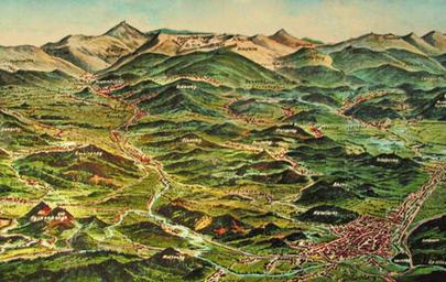 Keywords: Panorama Kotlina Karkonosze 02.jpg Kotlina Jeleniogórska Hirschberger Tal Karkonosze Mountains Riesengebirge around 1925 Panorama des Hirschberger Tals mit Riesengebirge im Vordergrund Hirschberg Kolorierte Zeichnung vor 1930 PD-Art Krkonoše Artworks missing infobox template |