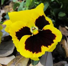Keywords: pansy flower blooming blossom plant floral yellow black garden spring