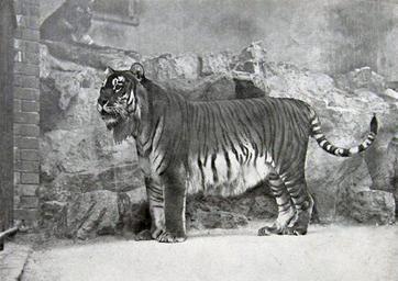 | Keywords: Panthera tigris virgata.jpg Caspian Tiger Panthera tigris virgata a k a Persian Tiger Berlin Zoo 1899 The Caspian Tiger or Persian tiger Panthera tigris virgata was found in Iran Afghanistan Turkey Mongolia and the Central Asiatic area of Russia This sub species of tigers the smallest in size became extinct in the late 1960s http //www petermaas nl/extinct/animals htm and http //animalvsanimal yuku com/topic/119/Extinct-Cats-Tribute TrFBu7K9adB circa 1895 http //books google dk/books id 15AsyQ8O2qoC pg PA148 dq london+sondaica+tigris hl da ei SlmxTsyqMMHa4QSasv3OAQ sa X oi book_result ct result resnum 5 ved 0CE0Q6AEwBA v onepage q london 20sondaica 20tigris f false Author Assessments 2 PD-old Panthera tigris virgata Extinct mammals photographed while extant Tigers in Zoologischer Garten Berlin |