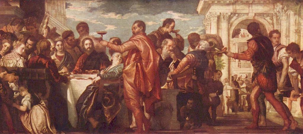 Keywords: Paolo Veronese 009.jpg Artwork de Hochzeit zu Kana oil on canvas cm 207 457 de Dresden de Gemäldegalerie Alte Meister 1 OG Raum 107 The Yorck Project 10 000 Meisterwerke der Malerei DVD-ROM 2002 ISBN 3936122202 Distributed by DIRECTMEDIA Publishing GmbH de 2 Drittel 16 Jh en 2nd third of 16th century Creator Paolo Veronese http //mail wikipedia org/pipermail/wikide-l/2005-April/012195 html Other versions PD-old-100 PD-Art-YorckProject See also <gallery> File Veronese Paolo - Marriage at Cana detail - 1571-72 jpg Detail of guests left </gallery> Marriage at Cana Paulo Veronese Dresden ImageNote 1 8 110 283 450 2560 1135 2 200px ImageNoteEnd 1 |