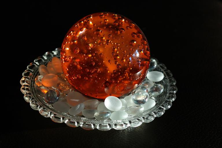 Keywords: paperweight crystal ball colored orange decoration glass glass work
