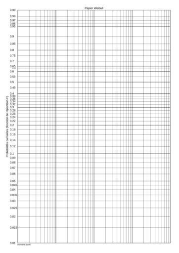 Keywords: Papier weibull 4 cycles log clairseme.svg fr Papier Weibull ou papier Allen Plait sur quatre ordres de grandeur en Weibull graph paper or Allen Plait graph paper on four cycle log 2013-03-26 14 39 50 own Cdang inkscape cdang scilab source <source lang scilab > fig scf 1 ; fig figure_size 630 891; clf; x 1 10 10 10 100 100 100 1000 1000 1000 10000; lnx log x ; lnxmin min lnx ; lnxmax max lnx ; nx size x 'c' ; F 0 01 0 005 0 05 0 03 0 01 0 1 0 12 0 02 0 4 0 45 0 05 0 95 0 96 0 01 0 99; y log -log 1-F ; ymin min y ; ymax max y ; ny size F 'c' ; for i 1 ny yy y i ; FF F i ; xpoly lnxmin lnxmax yy yy ; h1 gce ; h1 thickness 0 5; xstring -0 6 yy-0 08 string FF ; h2 gce ; h2 font_size 0 3; end FF 1-exp -1 ; yy log log 1-FF ; xpoly lnxmin lnxmax yy yy h1 gce ; h1 thickness 0 5; h1 line_style 3; for i 1 nx xx lnx i ; xpoly xx xx ymin ymax h1 gce ; h1 thickness 0 5; end a gca ; a data_bounds 0 ymin ; 10 ymax; </source> cc-zero Uploaded with UploadWizard Weibull graph paper |