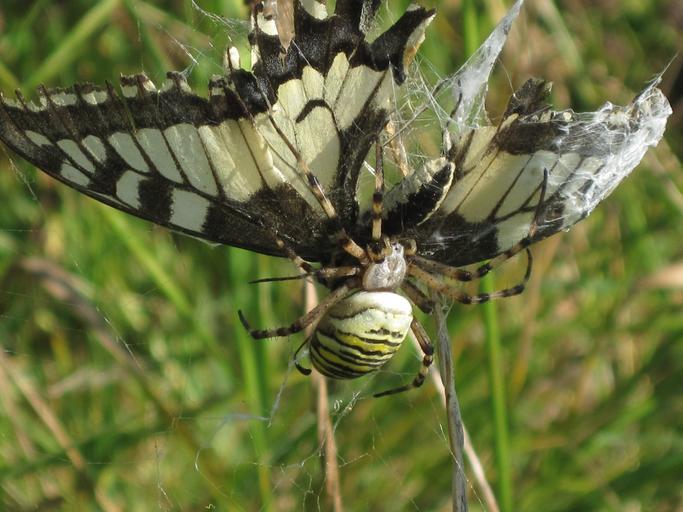 | Keywords: Papilio machaon (Old World Swallowtail) caught in the web of a Argiope bruennichi (Wasp Spider), Arnhem, the Netherlands.jpg 51 944979 5 846701 en Papilio machaon Old World Swallowtail caught in the web of a Argiope bruennichi Wasp Spider female Arnhem the Netherlands nl Papilio machaon Koninginnenpage in het web van een Argiope bruennichi Wespspin vrouwtje Arnhem Nederland 2012-08-18 own Bj schoenmakers cc-zero Uploaded with UploadWizard Papilio machaon Argiope bruennichi with prey Butterflies of the Netherlands Spiders of the Netherlands |