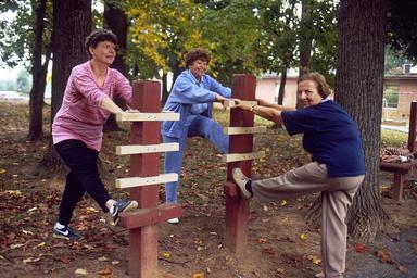 | Keywords: Par course.jpg Three older women stretching outdoors before exercising at different Par Course stations Topics/Categories Locations -- Nature/Outdoors People -- Adult People -- Recreation Type Color Photo Source National Cancer Institute Bill Branson Photographer 2376 1988-10 Reuse Restrictions None - This image is in the public domain and can be freely reused Please credit the source and/or author listed above Bill Branson Photographer PD-USGov-HHS-NIH Media from National Cancer Institute Visuals Online Images uploaded by Fæ |