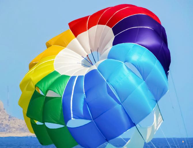 Keywords: parachute paragliding colours rainbow colours balloon sky sport activity vacation recreation summer leisure action