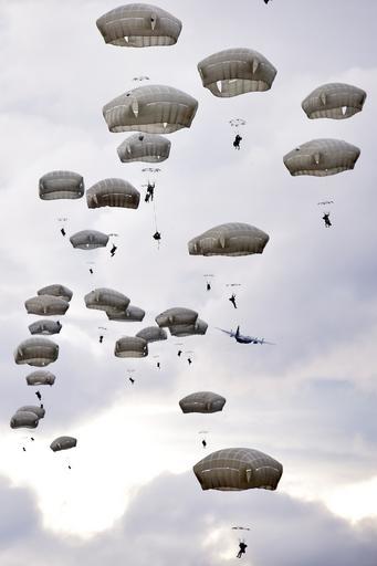 Keywords: parachute training parachuting jumping military airborne plane parachutists american sky forces paratroopers floating air canopy jumper