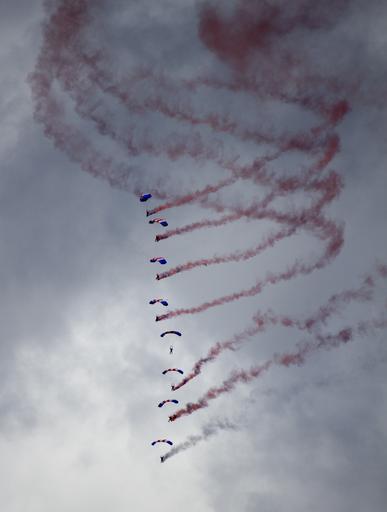 Keywords: parachuting parachute skydiving air show paratrooper sky diving extreme sport jump parachutist skydiver formation