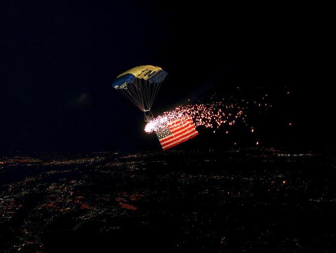 Keywords: parachutist flag fireworks parachute jump american usa military jumper performance celebration skydiver outdoor