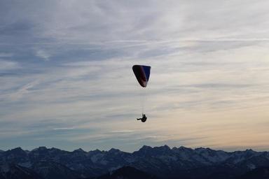 Keywords: parachutist mountains parachute fly skydiving sport event float glide paragliding paraglider alpine foothills panorama controllable parachuting