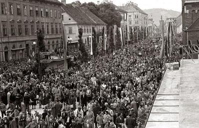 Keywords: Parada mladosti v Mariboru 1957 (1).jpg Parada mladosti v Mariboru 89631 1957-05-25 author PD-Slovenia 1957 Youth Day in Maribor Historical black and white photographs of Maribor Crowds in Maribor Flags in Maribor